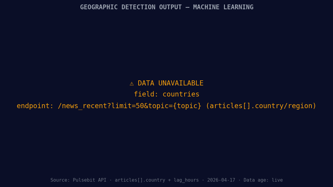 [DATA UNAVAILABLE: countries — verify /news_recent is returning country/region values for topic: machine learning]